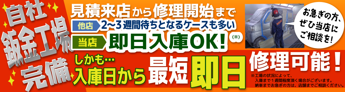 当店にてお客様のお車をお預かりし、提携鈑金・修理工場にて修理を致します。